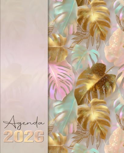 Agenda Semainier 2026 | Collection Idyllic Tropics – Éclat d’Or Pastel | Format 19 x 23,5 cm (7,5” x 9,25”) | 1 semaine sur 2 pages, planification ... calendrier, répertoire, mots de passe, notes.