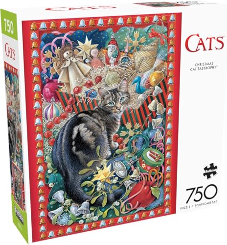 Buffalo Games – jul- kattsmakrofi – 750 bitar pussel för vuxna utmanande pussel perfekt för spelkvällar – 750 bitars färdig storlek är 24,00 x 18,00, stor