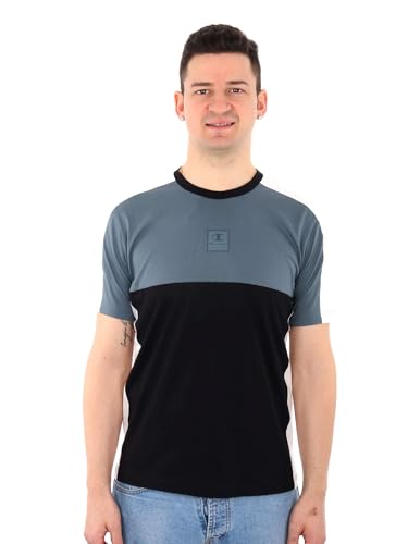 Champion Legacy Athleisure Color Block S/S Crewneck T-Shirt, svart/grå pastell, XS herr SS24, Svart/Pastellgrå, XS