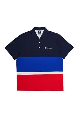 Champion Legacy Retro Sport Polo - Color Block S/S Pikétröja, Marinblå/Elektrisk/Röd, L Herr SS24, Marinblå/Elektrisk Blå/Röd, L