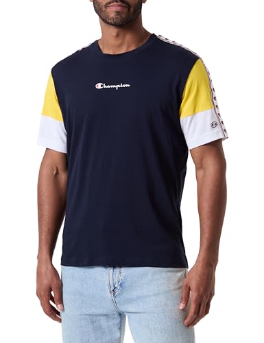 Champion Legacy Retro Sport - Tape S/S Crewneck T-Shirt, Marinblå/Vit/Gul, S Herr SS24, Marinblå/vit/gul, S