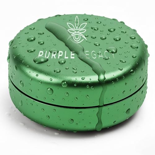 PURPLE LEGACY Ultralätt stash box aluminiumburk I vattentät I lufttät I ø 55 x 24 mm I UV ljusskyddad låda för piller örter kryddor (lilagrön)