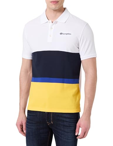 Champion Legacy Retro Sport Polo - Color Block S/S Pikétröja, Vit/Marinblå/Gul, M herr SS24, Vit/Marinblå/Gul, M