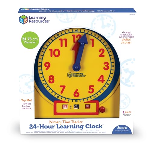 Learning Resources Big Time 24-timmarsklocka för elever, barn lär sig klockan, matematikmanipulering för att visa tiden, analog klocka för barn
