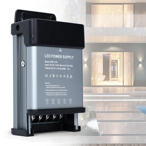 YOODI 24V Nätadapter LED-transformator 100W 230V Till 24V 4,1A Regntålig IP47 LED-drivrutin Ultratunn Konstant Spänning LED Nätadapter Lågspänningstransformator För LED-Lampor, Remsor