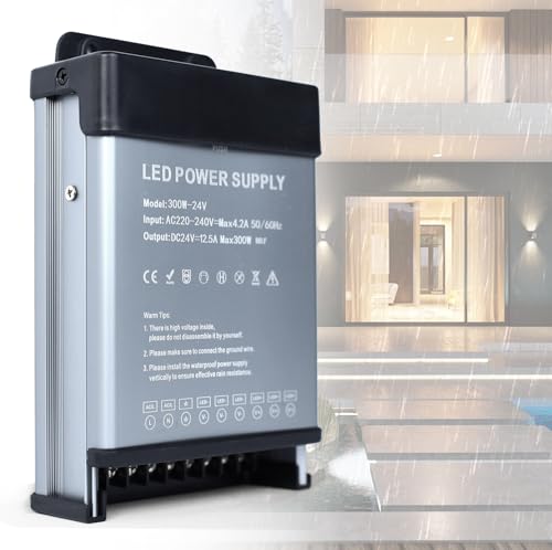 YOODI 24V Nätadapter LED-transformator 300W 230V Till 24V 12,5A Regntålig IP47 LED-drivrutin Ultratunn Konstant Spänning LED Nätadapter Lågspänningstransformator För LED-Lampor, Remsor