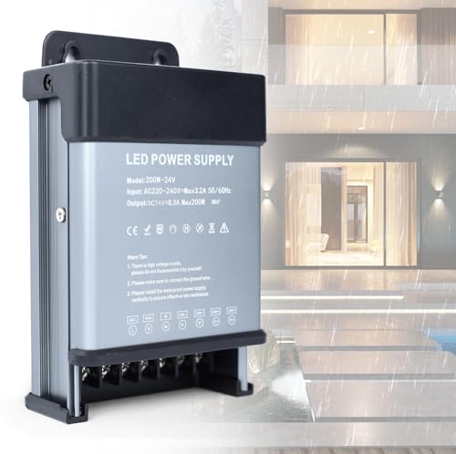 YOODI 24V Nätadapter LED-transformator 200W 230V Till 24V 8,3A Regntålig IP47 LED-drivrutin Ultratunn Konstant Spänning LED Nätadapter Lågspänningstransformator För LED-Lampor, Remsor