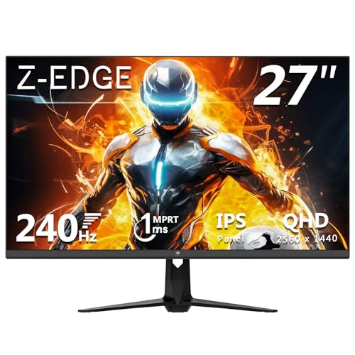 Z-Edge Gaming Monitor 27 tum IPS QHD (2560 x 1440), 240 Hz (DP1.4×2), 1 ms, FreeSync, 16:9 LED-spelskärm, 144 Hz (HDMI2.0×2), justerbar lutning, 400 cd/m², VESA 100 x 100 mm (DP-kabel ingår)
