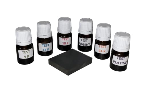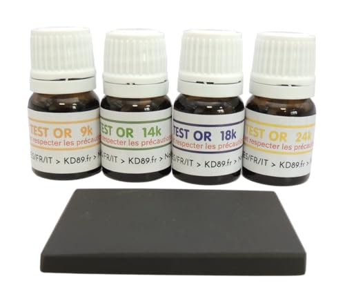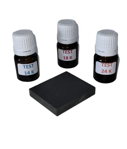 Begränsat erbjudande för guldtest: Guldtestarsats med 4 flaskor, 9, 14, 18, 24 K KARATS, redo för användning + NATURLIG touchstone 50 x 40 mm testtest guld