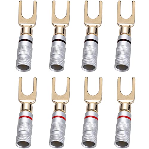 Greluma 8 st 24K guld Y plugg 45 graders skruv spadkontakt för högtalartråd gör det själv,korrosionsbeständig,4 svarta och 4 röda