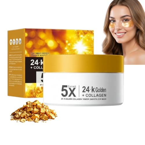 Revitale 24k kollagenlappar, guld under ögonen, minskar puffiga ögon och mörka cirklar, belysa trötta ögonmasker – fast, ljusare, ger energi (burk – 30 par)