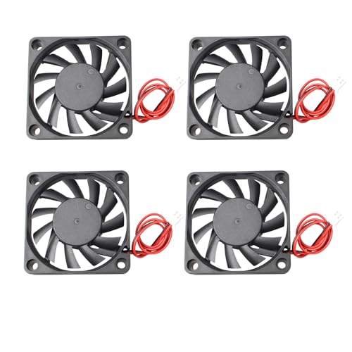 Jopto Borstlös tyst minifläkt, 60 x 60 x 10 mm 6010 DC 24 V fläkt med 2-polig terminal, kompatibel med 3D-skrivare, PC, CPU, datorhus för hemmafixare, med 30 cm lång kabel, 4 stycken