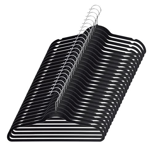 Home Basics Best, Sturdy and Non-Slip Black Steel Indoor Flocked Suit/Clothes Hangers (Pack of 25), 9.25 inches high x 18 inches Wide x 0.25 inches deep