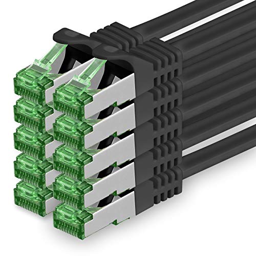 0,25 m Cat.7 nätverkskabel 10 stycken Cat7-patch-kabel LAN-kabel Ethernet RJ45 10 Gbit/s (alla internethastigheter) svart 0,25 meter