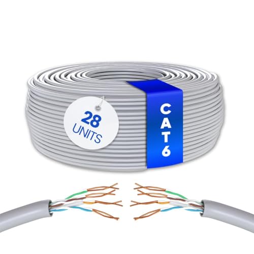 Mr. Tronic 28 stycken 25 m Ethernet-nätverkskabel, Cat 6 LAN-kabel för snabbt och tillförlitligt internet, AWG24-patchkabel, 1 Gbps, 250 MHz, UTP CCA (28 stycken x 25 meter, grå)