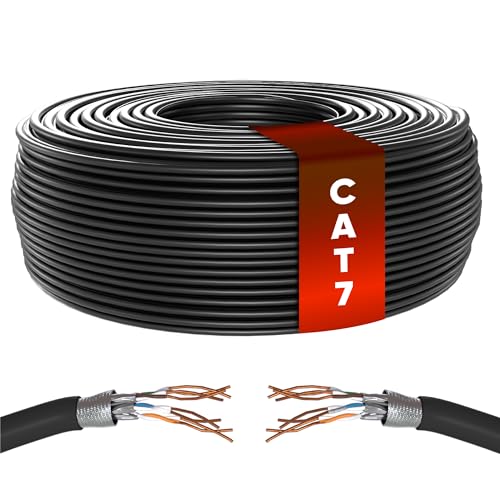 Mr. Tronic Bulk Cat 7 Ethernet-kabel 25 m, Bulk ren koppar LAN-nätverkskabel för internet snabbt och pålitligt - Cat7-kopparbulkkabel, 10 Gbps internetkabel 600 MHz SFTP (25 meter, Svart)