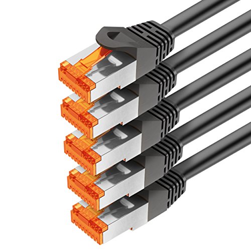 mumbi LAN kabel 0,25 m CAT 6 nätverkskabel skärmad F/UTP CAT6 Ethernet-kabel patchkabel RJ45 0,25 meter, svart (set med 5)