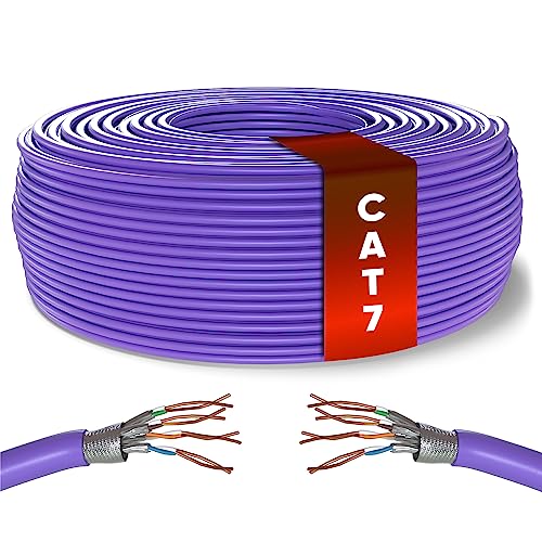 Mr. Tronic Bulk Cat 7 Ethernet-kabel 25 m, Bulk ren koppar LAN-nätverkskabel för internet snabbt och pålitligt - Cat7-kopparbulkkabel, 10 Gbps internetkabel 600 MHz SFTP (25 meter, Lila)