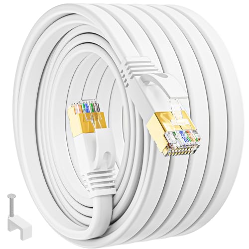 Nätverkskabel 25m Ethernet Kabel Platt Cat 8 Lan Kabel Hög Hastighet Ethernet Cable 25m Långa 40Gbps 2000MHz Network Cable Gigabit Vit RJ45 Internetkabel 25 Meter -för Router Modem