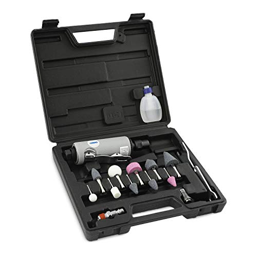 ABAC rak tryckluftsslip för kompressor G-201, tryckluftsslip med gummihandtag, 5 slipstift med 3 mm skaft och 5 med 6 mm skaft, 25 000 varv/min, max tryck 6 bar