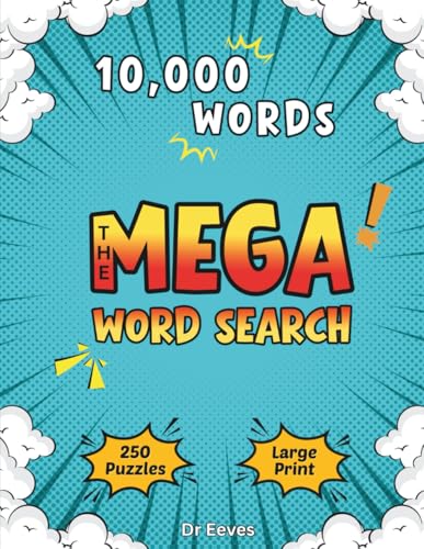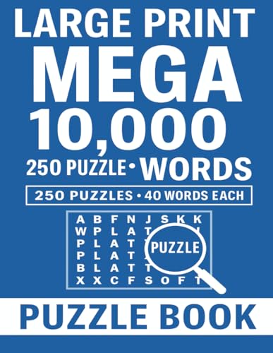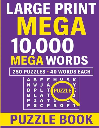 Large Print Mega Word Search Puzzle Book: 10,000 Words – 250 Fun & Challenging Puzzles (40 Words Each) for Adults & Seniors