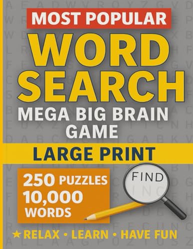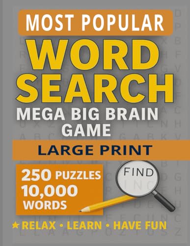 Word Search Mega Big Brain Game: 250 Puzzles – 10,000 Words – Large Print Puzzle Book for Relaxing Fun & Brain Training