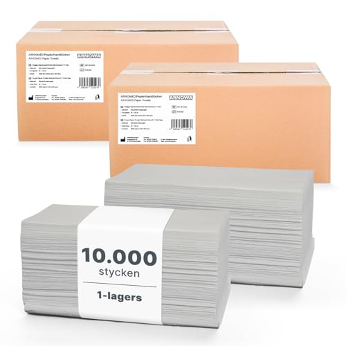 ARNOMED pappershanddukar 10.000 stycken, 1-lagers V-fold, 25x23cm kökspapper, handdukspapper natur, 20x250 pappershanddukar för dispenser, pappershanddukar, pappersservetter