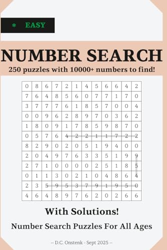 Easy Number Search: 250 puzzles | 10000+ numbers to find | larger font | pocket-sized, 6x9 inches