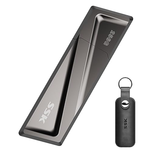 SSK Extern USB C SSD 256 GB extern hårddisk, upp till 1 000 MB/s, snabb USB-minne, dubbel USBC USBA USB 3.2 Gen2-minne för iPhone 15/PS4/Android Phone/surfplatta/Windows/Mac