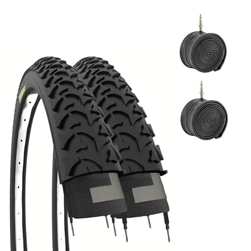 Fincci Hållbara cykeldäck 26 x 1,95 – Hopfällbart högt grepp Kevlar 26 tum cykeldäck med 26 tum cykel innerslang Schrader-ventil – däck 60 TPI för MTB, Hybrid, Enduro, Xc-cyklar – lättviktsdäck 50-559