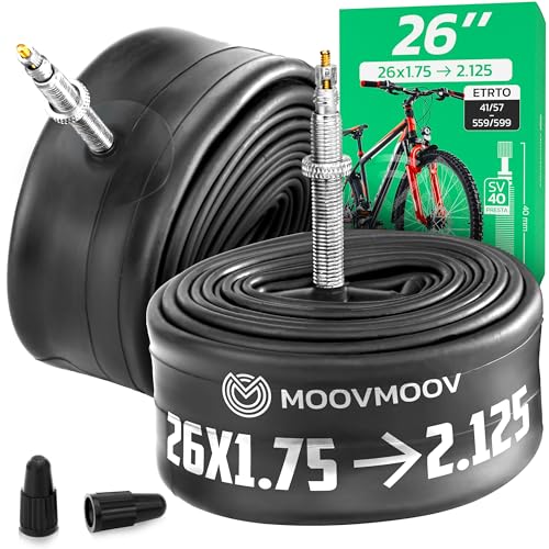 MOOVMOOV Cykelslang 26 Tum (Presta-ventil) - Passar däck 26x1.75, 26x1.85, 26x1.90, 26x1.95, 26x2.0, 26x2.10 och 26x2.125 (ETRTO 41-559 till 57-559) - 2-pack - För MTB och Elcykel