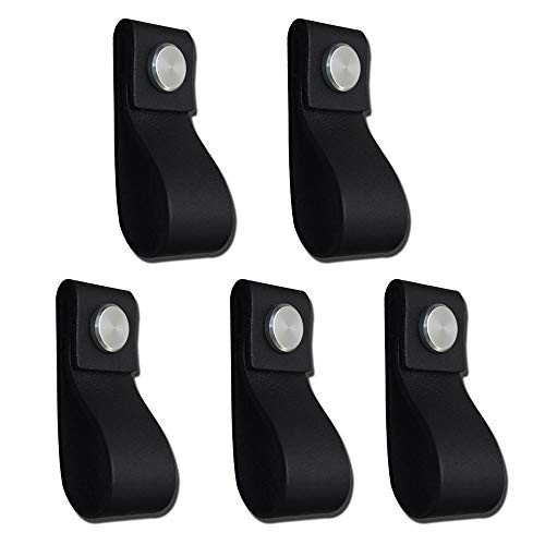 POFET 5 st handgjorda läderskåp dörrhandtag drar knopp byrå låda dörrhandtag kök dragknopp – mörkbrun, 195 x 26 mm – svart