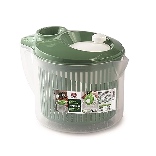 Snips, salladstvätt, salladsslunga med lock, 3 L, salladsslunga med avtagbar inre korg, 19,5 x 26,5 x 19 cm, salladstvätt med sidohandtag, grön och vit, tillverkad i Italien