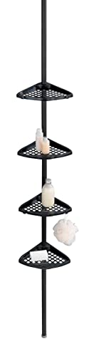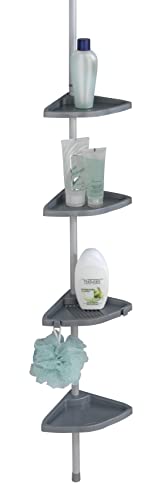 WENKO Teleskopisk duschhörn kompakt silver – med 4 hyllor, aluminium, 26 x 78–275 x 19,5 cm, silver