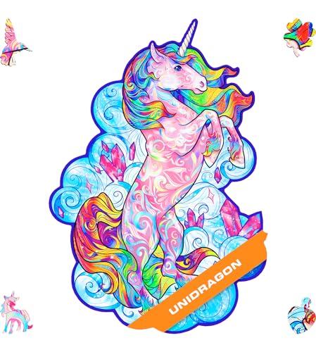 UNIDRAGON Original träpussel - inspirerande enhörning, 195 teile, medium 10,2 x 12,6 tum (26 x 32 cm) vacker presentförpackning, unik form, bästa presenten för vuxna och barn