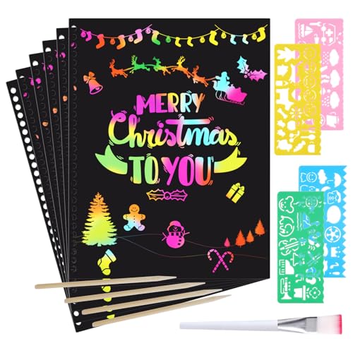 OFFCUP Skrapkonst för barn, 2 regnbågspapper böcker, magisk regnbåge skrapkonst med 4 pennor 4 målningsmönster barnkonst, borste och hantverk för åldrarna 4-12 pojkar flickor födelsedag (19,5 x 26 cm)