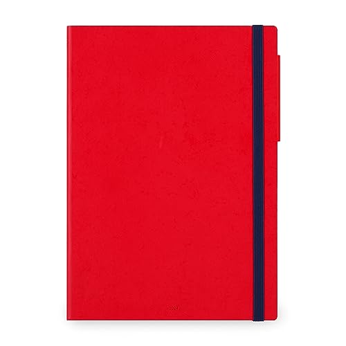 Legami - Veckovis Maxi, 12 månader, januari 2024 till december 2024, på 6 språk, elastisk stängning, månadsplanerare, januari 2025, Ferie-plan, adressbok, 19,5 x 26,5 cm, färg röd passion