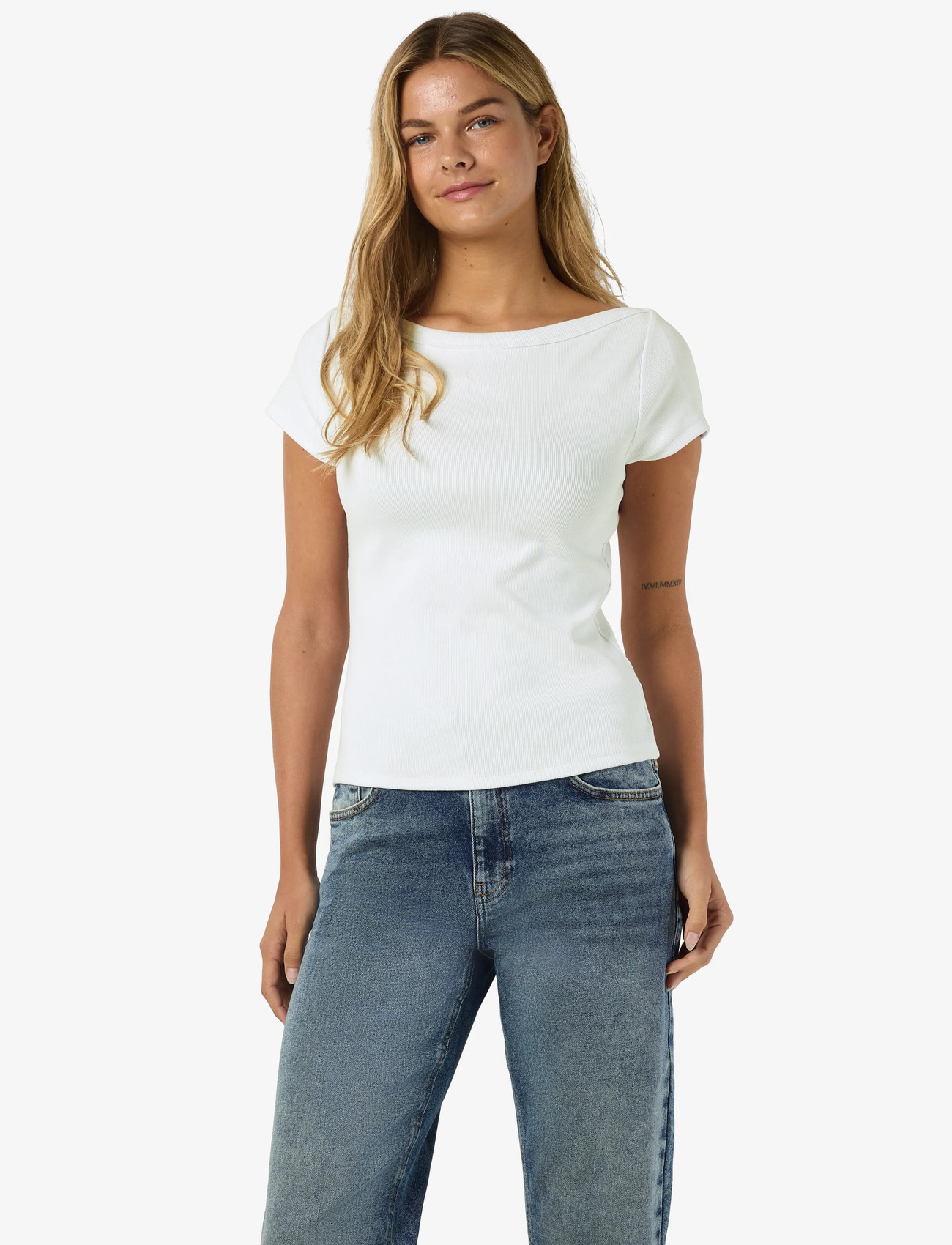 NOISY MAY Nmmaya S/S Boatneck Top Noos - White - XS