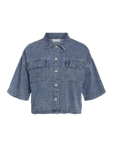 Noisy may Nmenza S/S Reg Crop Shirt Mg004 Mb Noos, Medium Denimblå, S Dam, Medium Denim Blå, S