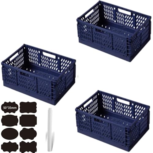 CNKHDZ 3 delar Fällbar låda,Blått 42x28x16cm hopfällbara lådor förvaringslådor i plast, förvaringskorgar med handtag, stapelbara förvaringslådor för hyllor, skrivbord, badrum, hemorganisering