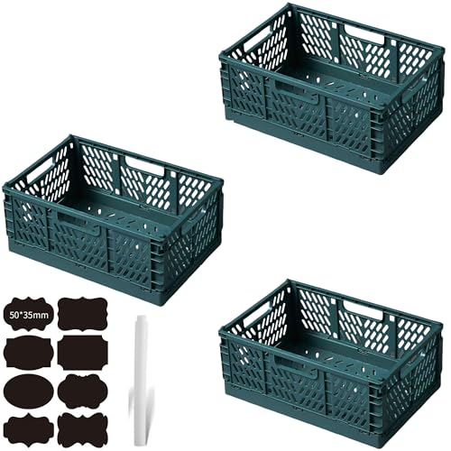 CNKHDZ 3 delar Fällbar låda,Grönt 42x28x16cm hopfällbara lådor förvaringslådor i plast, förvaringskorgar med handtag, stapelbara förvaringslådor för hyllor, skrivbord, badrum, hemorganisering