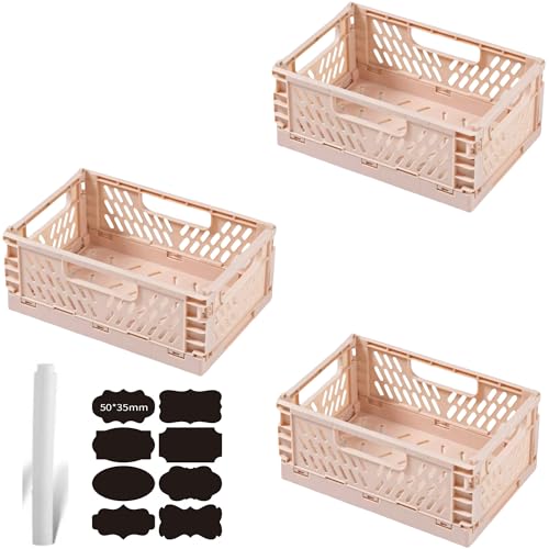 CNKHDZ 3 delar Fällbar låda,Rosa 42x28x16cm hopfällbara lådor förvaringslådor i plast, förvaringskorgar med handtag, stapelbara förvaringslådor för hyllor, skrivbord, badrum, hemorganisering