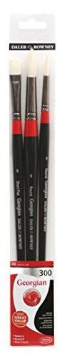 Georgian Daler Rowney oljepinselset, 3 stycken, handgjorda, svart handtag, lång