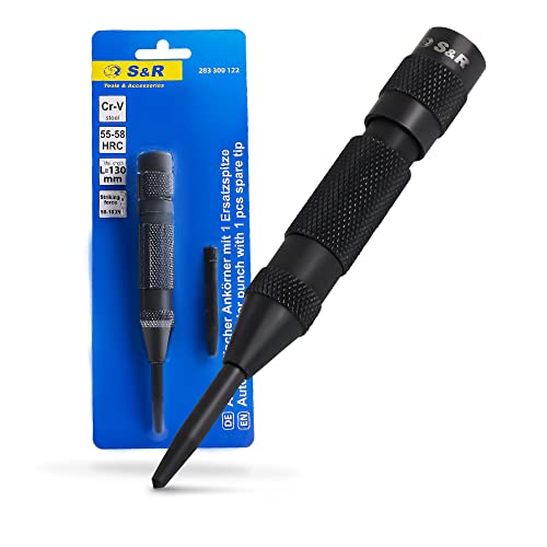 S&R Automatisk Centrumstans, 130 mm, fjädercentrumstans med 1 reservspets, Cr-V, automatisk centrumstans räfflad, robust och tålig design i helmetall (1: Solid metall 60-130 N, Tillverkad i Tyskland)