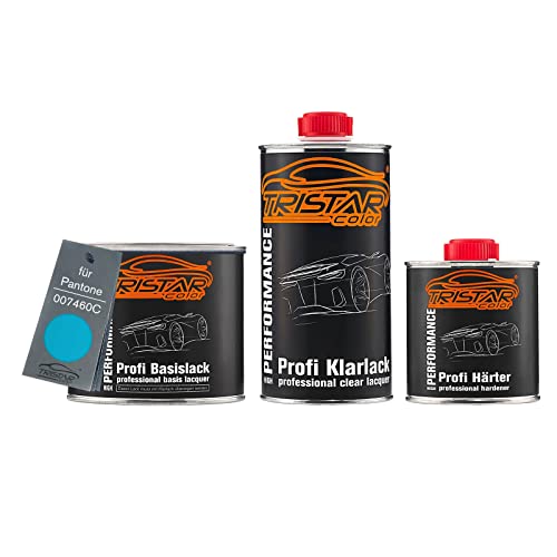 TRISTARcolor Billack Set Sprayfärdig burk för Pantone 007460C 7460C Blue Baslack + 2K Klarlack 1,25L