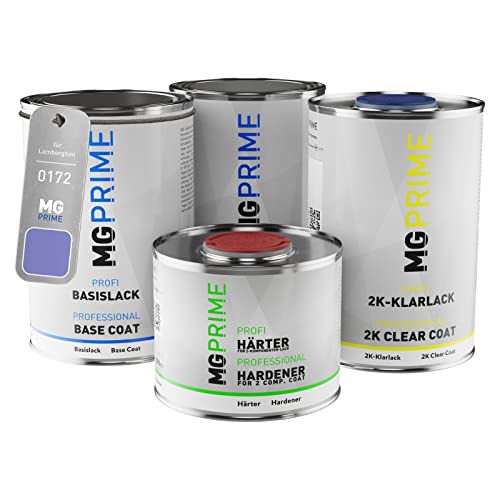 MG PRIME Billack Burkset för Lamborghini 0172 Viola Parsifae Pearl/Viola Pasifae Pearl Primer Basecoat 2K Klarlack Härdare sprutfärdig 3,5L