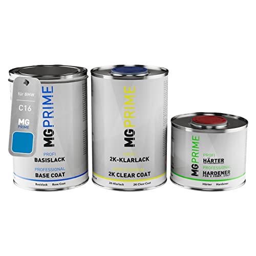 MG PRIME Billack Can Set för BMW C16 Long Beach Blue Metallic Baslack 2K Klarlack Härdare sprutfärdig 2,5L