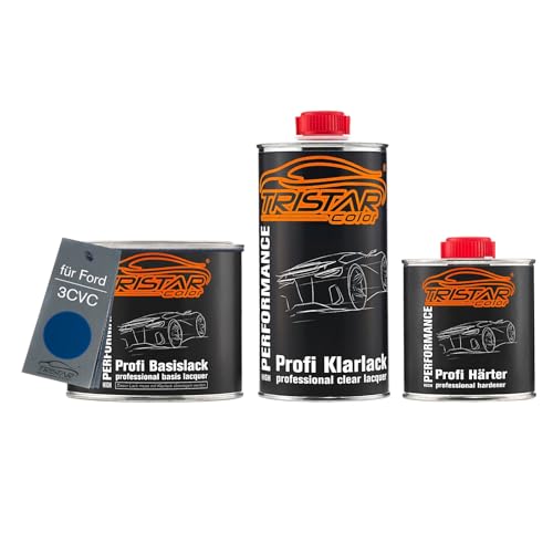 TRISTARcolor Billack Set Sprayfärdig burk för Ford 3CVC Performance Blue Metallic/Bleu Cyclone Metallic Baslack + 2K Klarlack 1,25L
