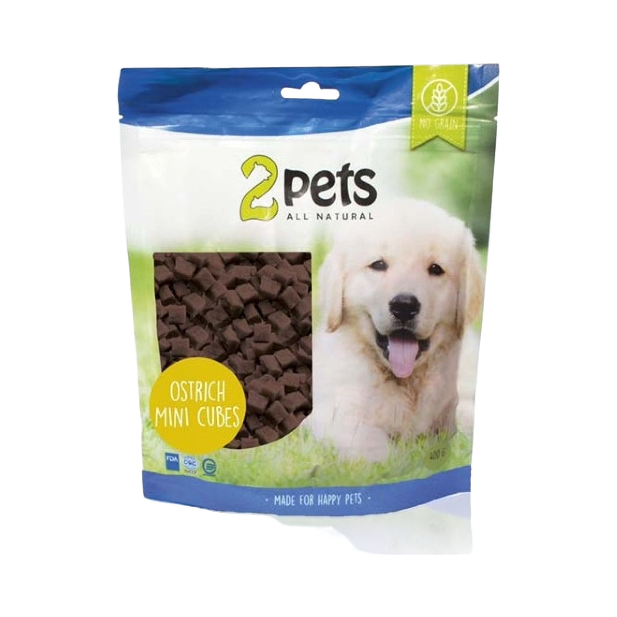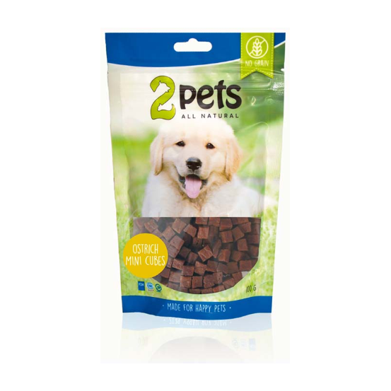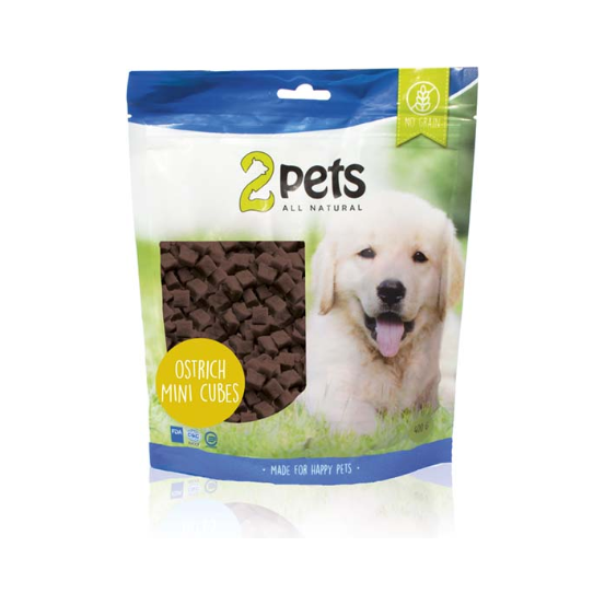 2 Pets Dogsnack Ostrich Mini Cubes 400g