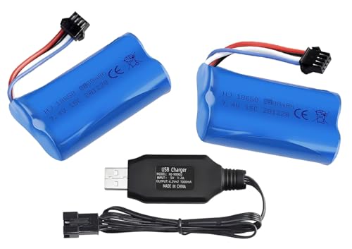 Zeee 2S Li-Ion-batteri 2000 mAh 7,4 V batteri med SM 2P kontakt paket med 2 USB-laddare kompatibel med MN D90/91, MN 99/99s RC bilar, H101 H103 H105 RC båt RC lastbil (2-pack)